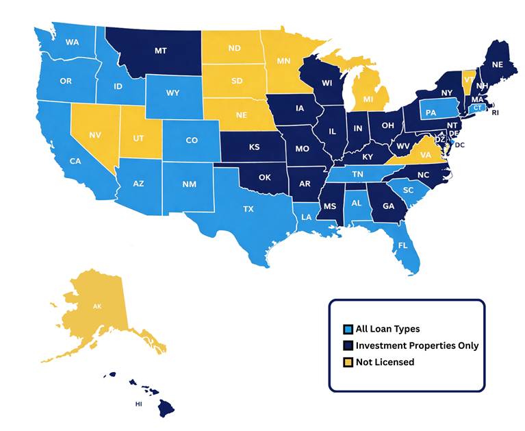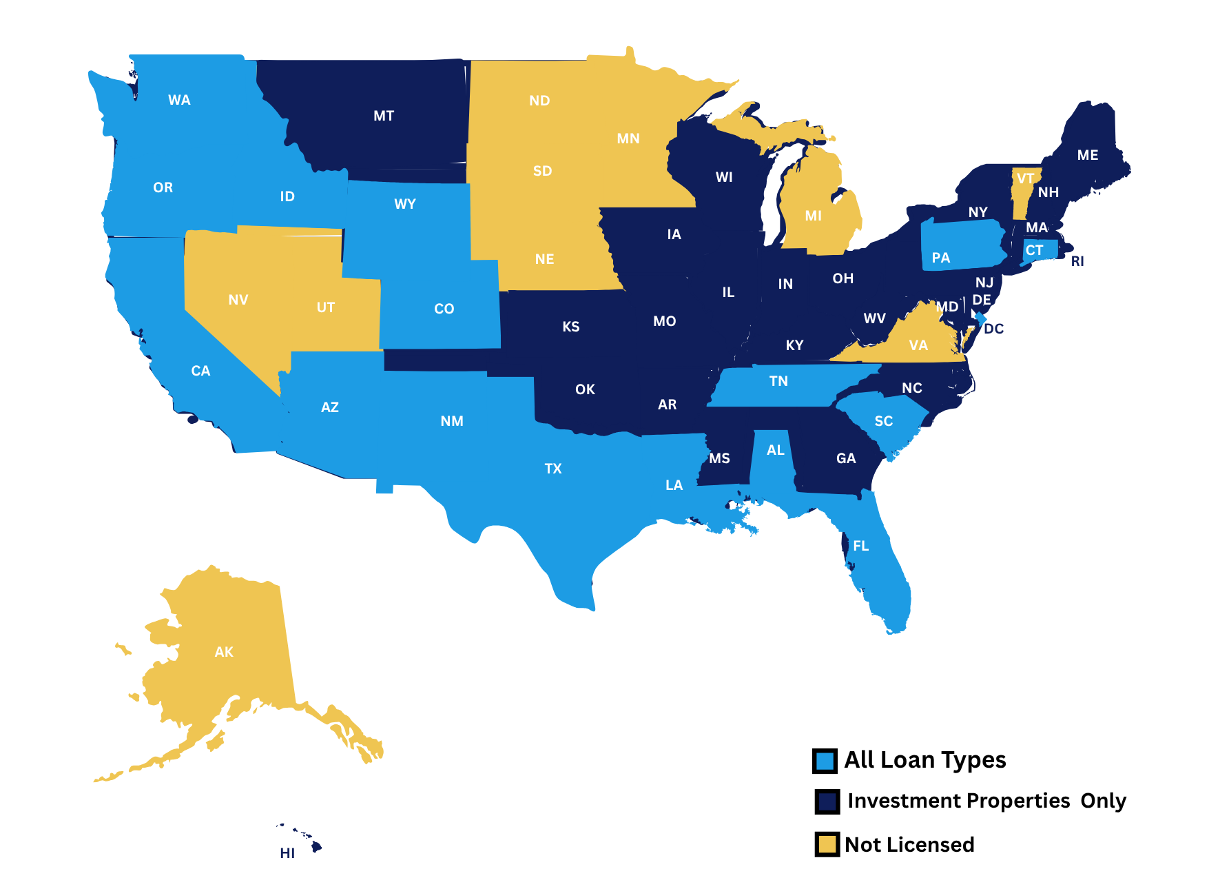 We provide investment property and business-purpose mortgage loans in 38 states.